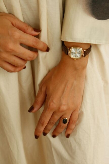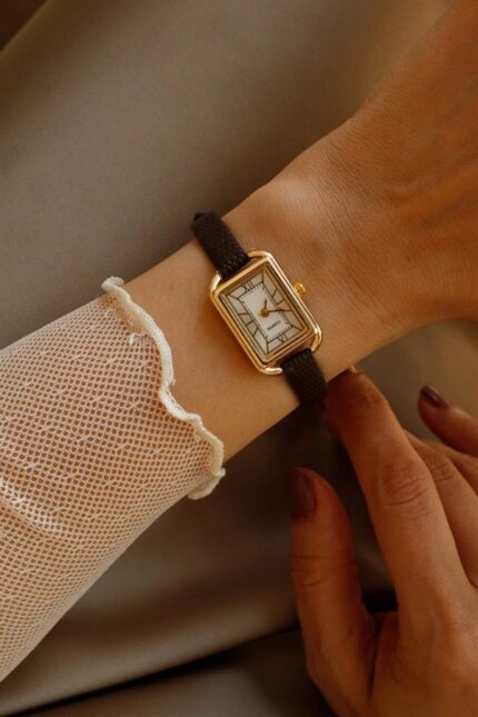 Montre femme Abelia en cuir marron foncé