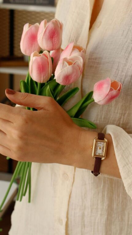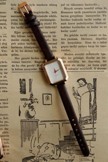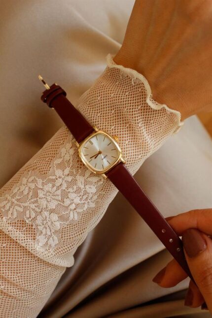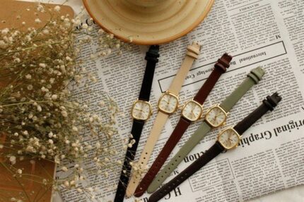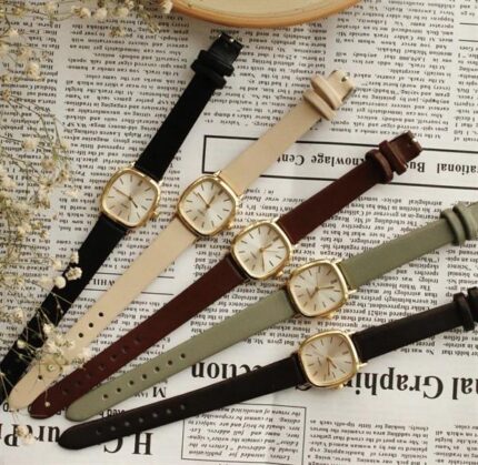 Montre bracelet en cuir vintage marron acide_x000D_