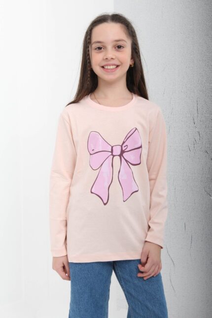 T-shirt fille à manches longues avec imprimé nœud en 100 % coton