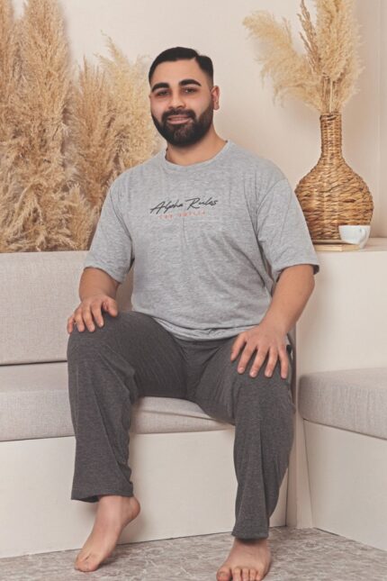 Ensemble de pyjama pour homme grande taille, à manches courtes et avec poches, en coton_x000D_