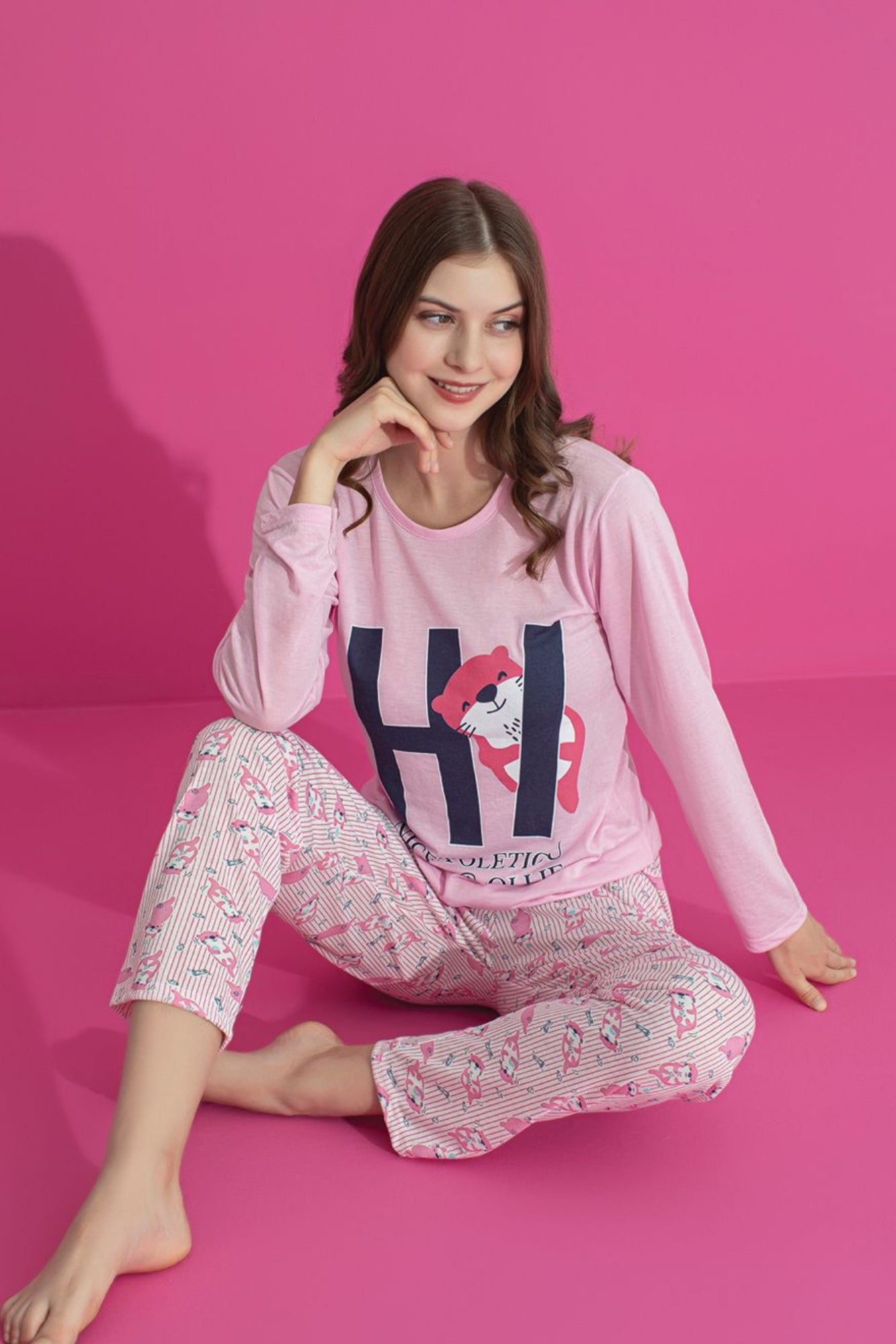 Accueil Vêtements et Style « Ensemble de pyjama long à manches pour femme en coton à motifs, modèle Dreamy. »