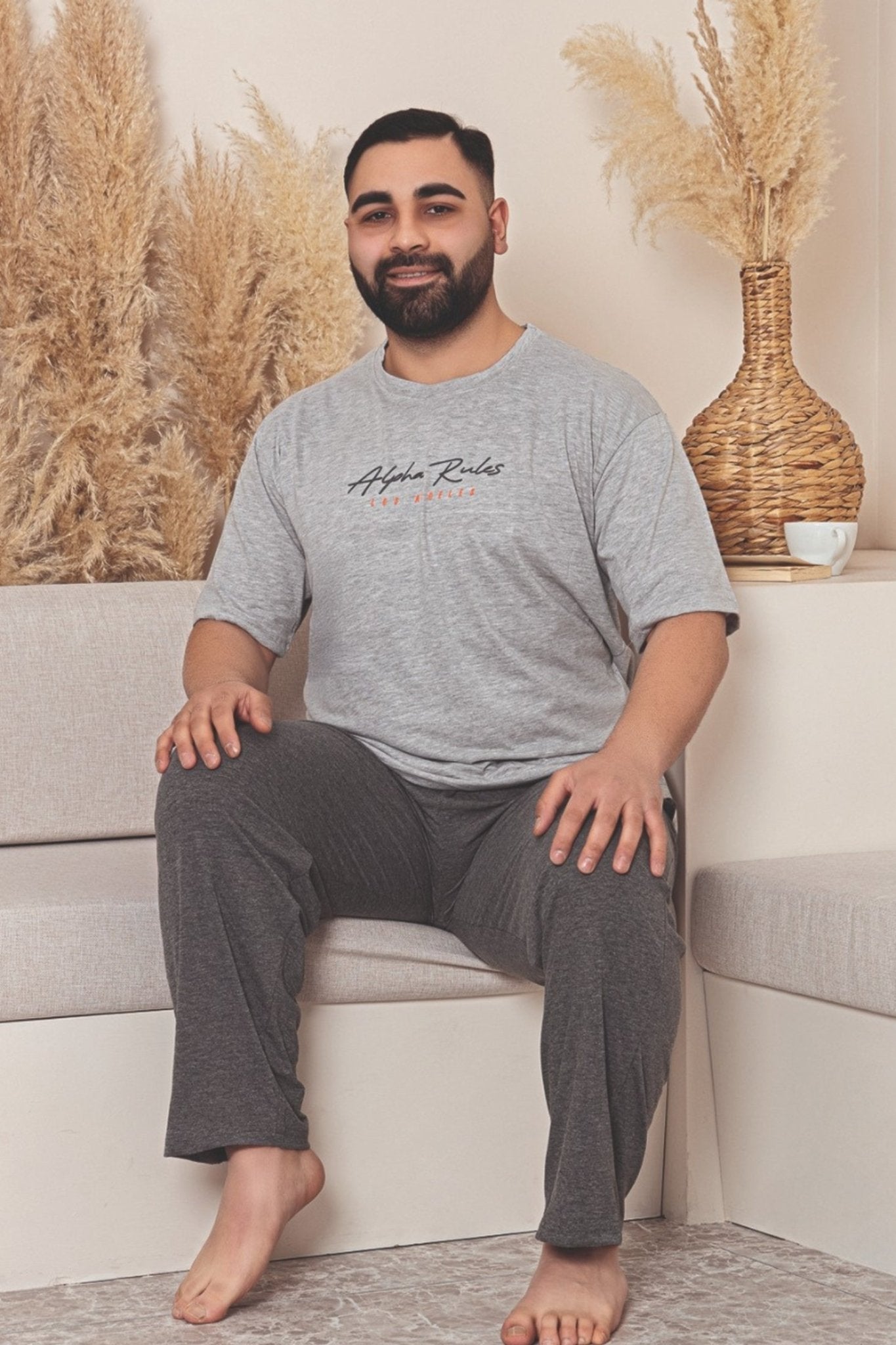 Accueil Vêtements et Style Ensemble de pyjama pour homme grande taille, à manches courtes et avec poches, en coton_x000D_