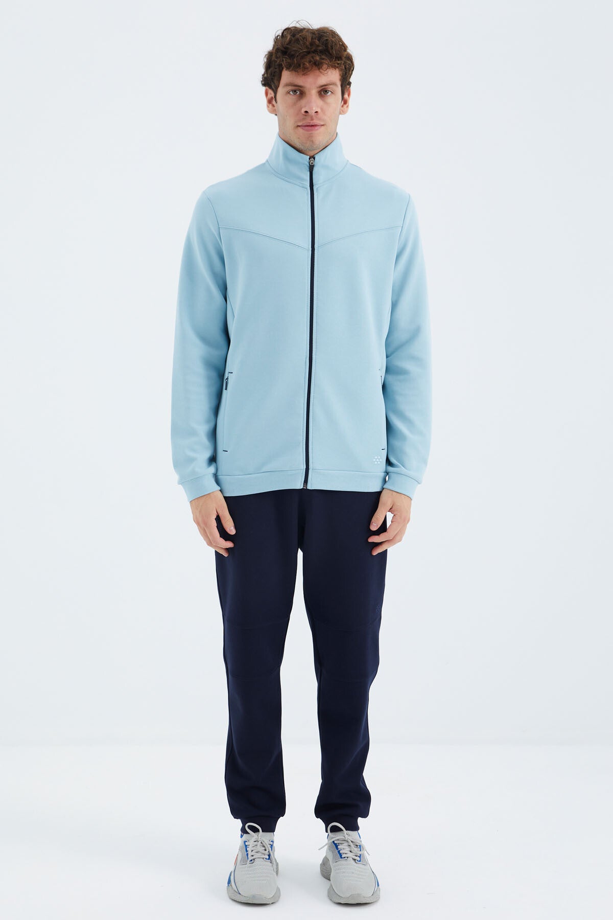 Accueil Vêtements et Style Ensemble de survêtement pour homme en mélange de gris, col montant, avec poches cachées et coupe décontractée – 85220
