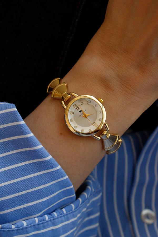 Accueil Vêtements et Style Montre-bracelet Blade en acier inoxydable, boîtier rond en métal doré_x000D_