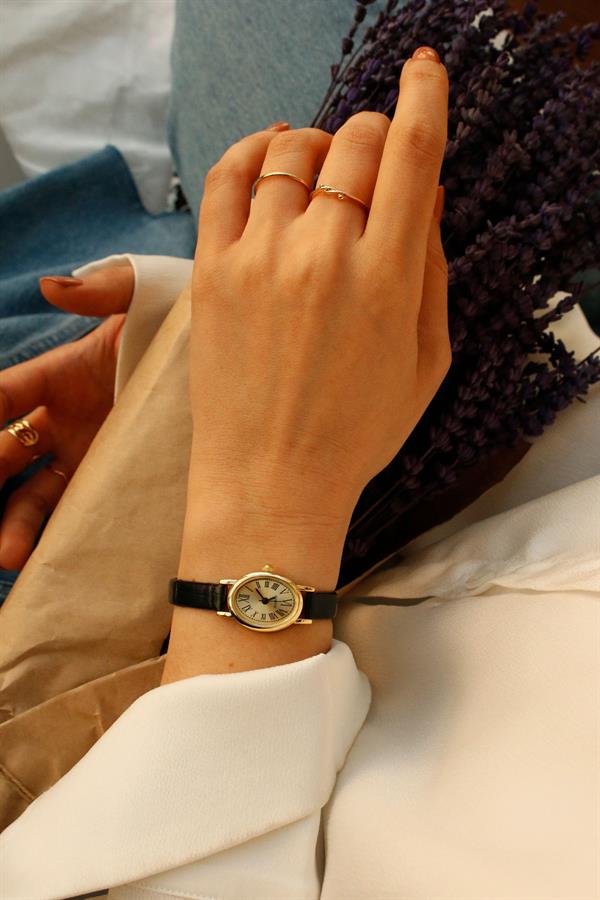 Accueil Vêtements et Style Montre Justina avec bracelet en cuir noir_x000D_