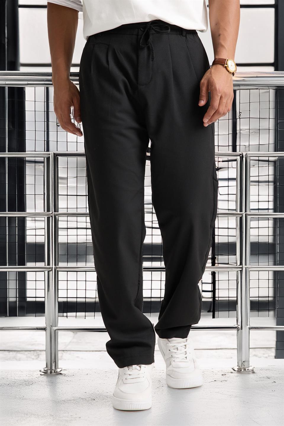 Accueil Vêtements et Style Pantalon jogger pour homme avec plis doubles à l’avant, taille zippée et élastiquée_x000D_