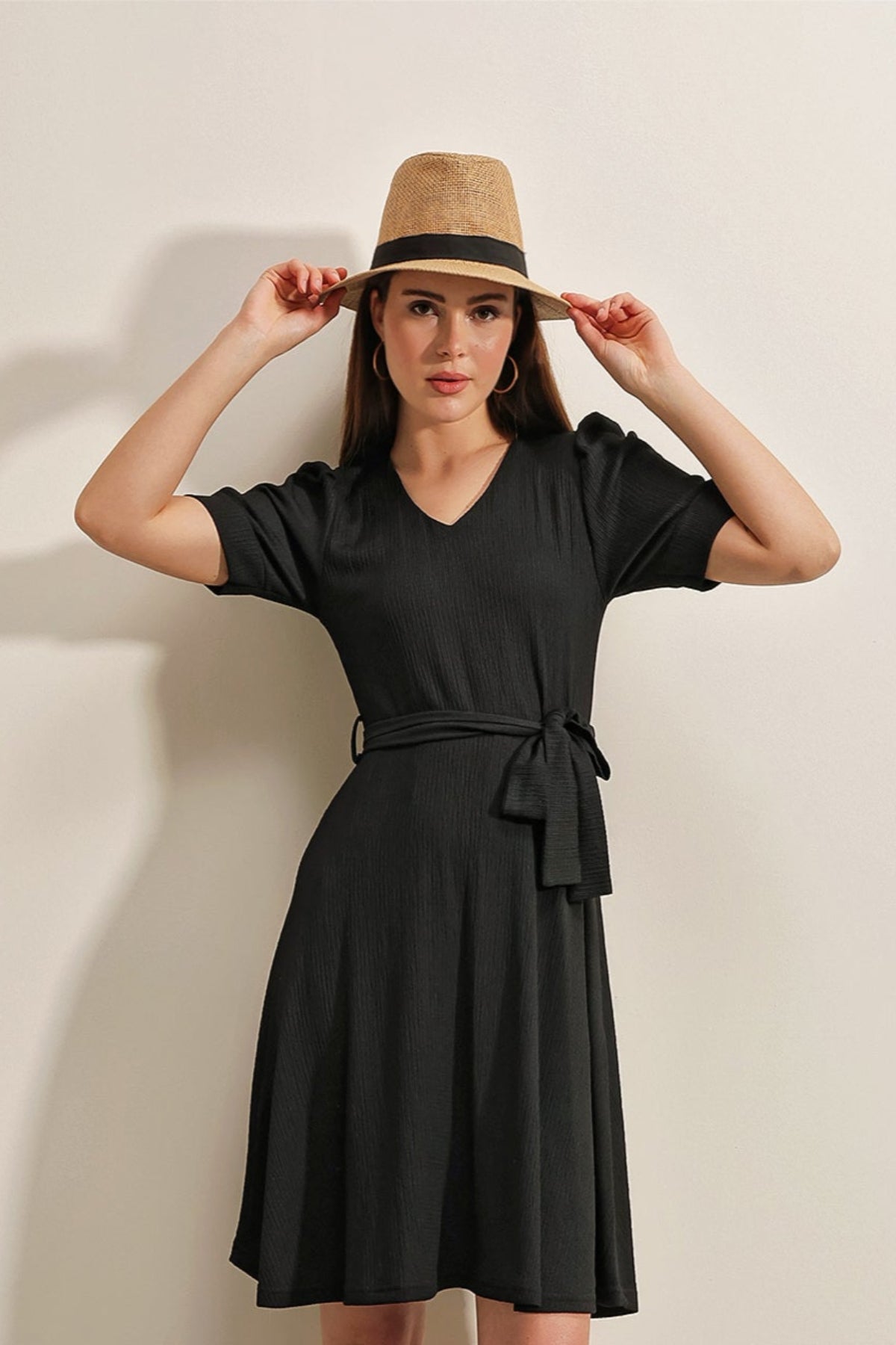 Robe courte à manches courtes et décolleté en V pour femme - 2567._x000D_ 155,10 د.م.