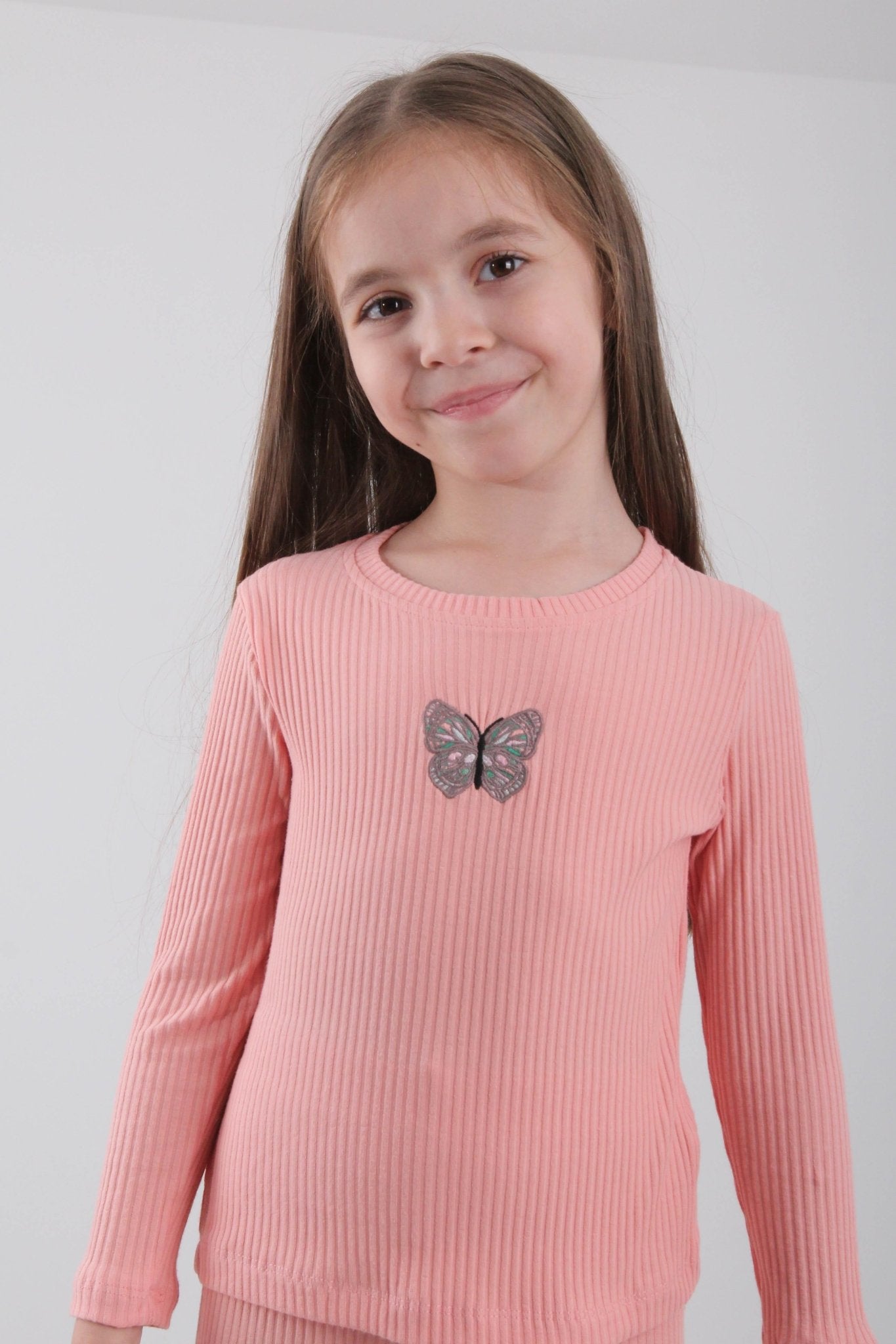 Sweatshirt fille avec broderie de papillon en 100 % coton