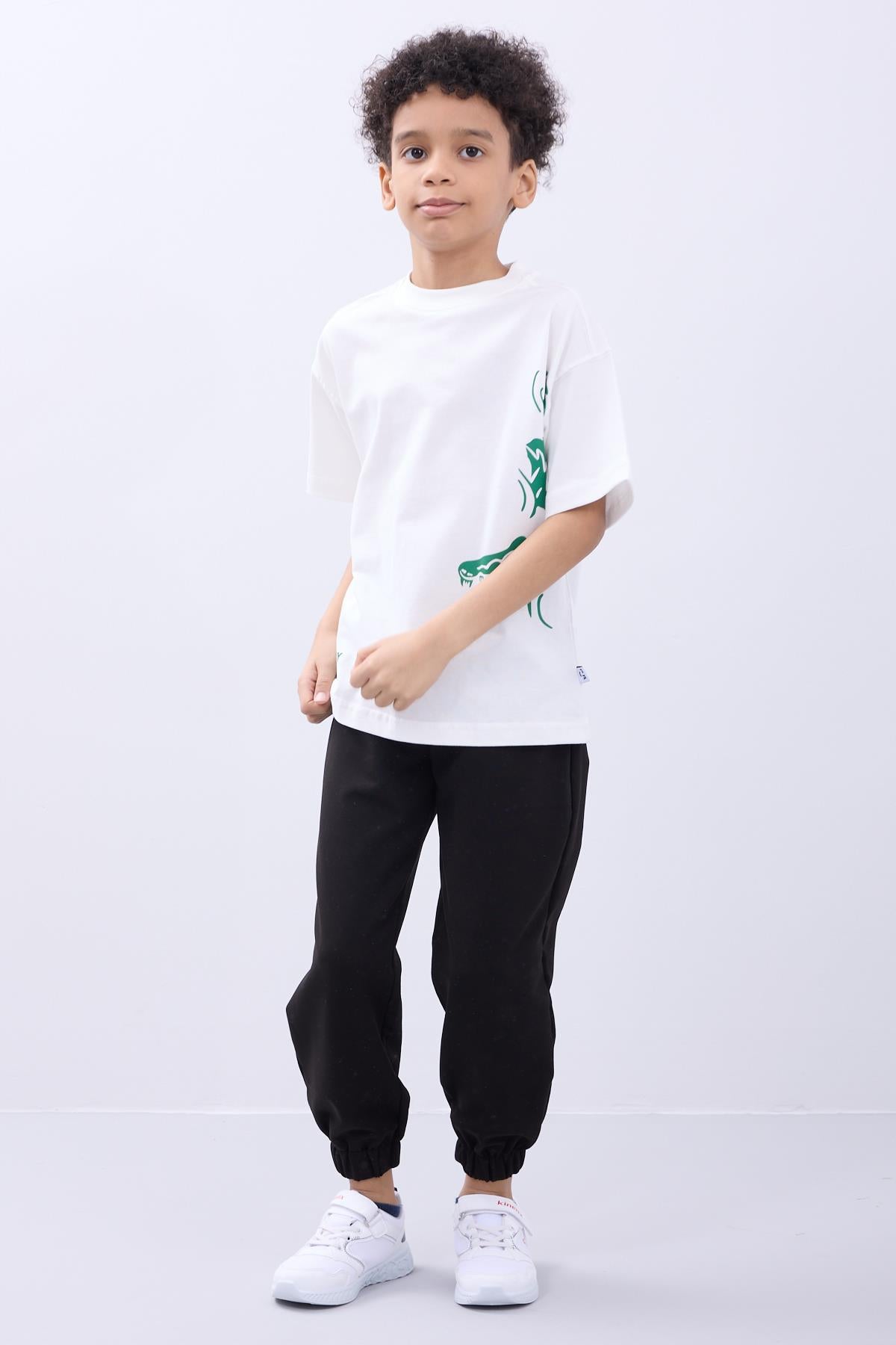 Accueil Vêtements et Style T-shirt à imprimé crocodile pour garçon – Ensemble de 2 t-shirts oversize en coton 100%, écru/vert.
