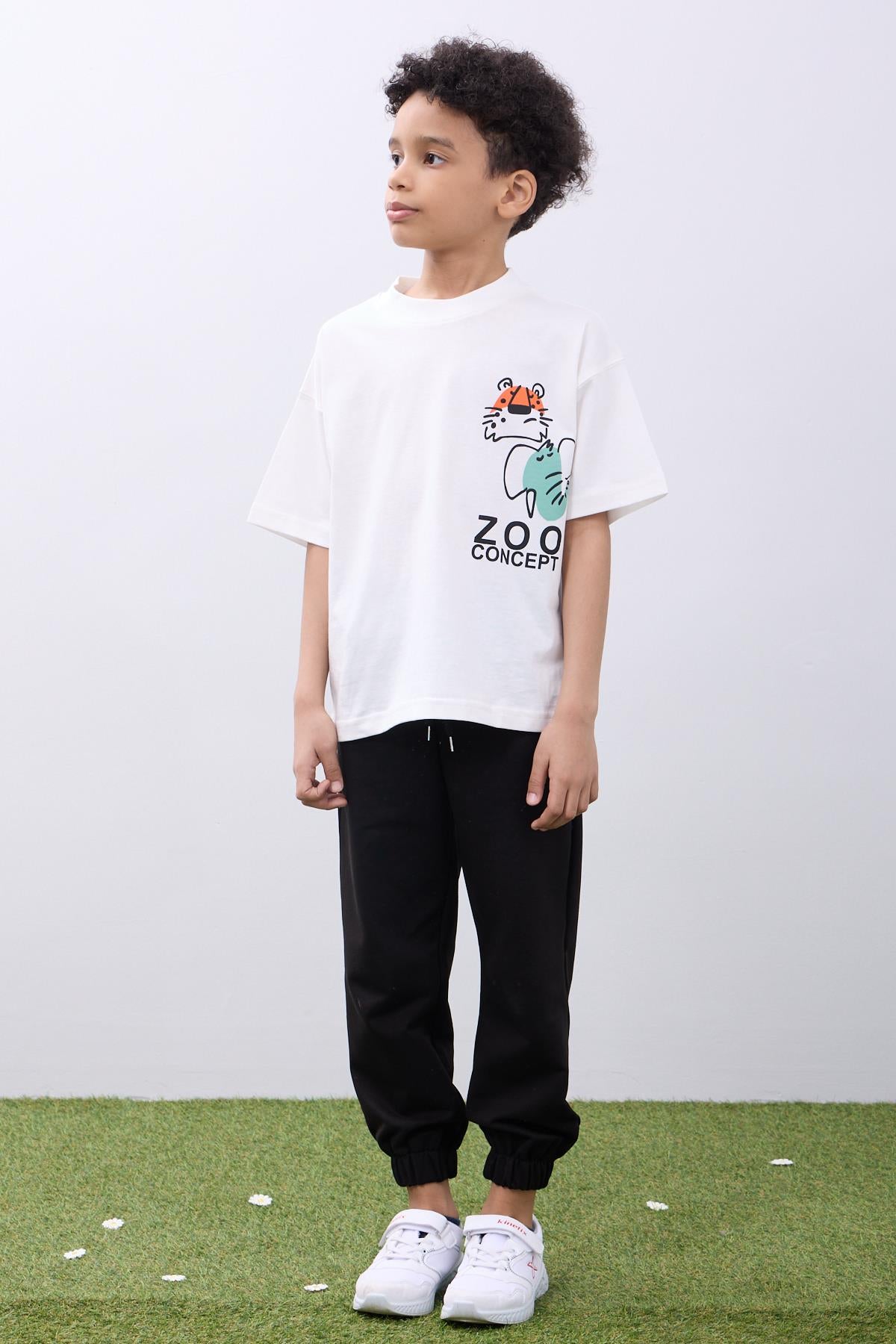 T-shirt à Imprimé Zoo 100 % Coton – T-shirt Oversize pour Garçon 2 Pièces Écru/Gris Fumé