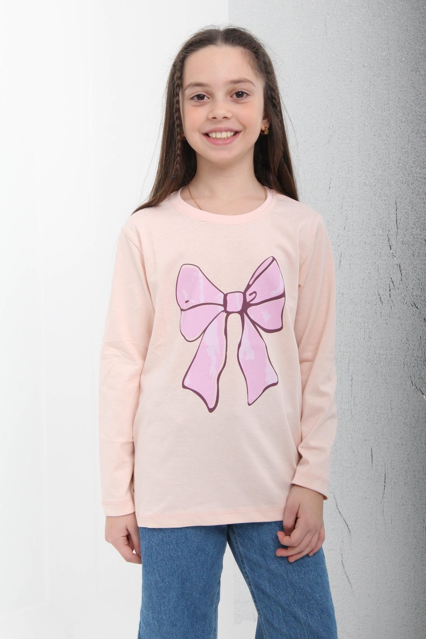 Accueil Vêtements et Style T-shirt fille à manches longues avec imprimé nœud en 100 % coton