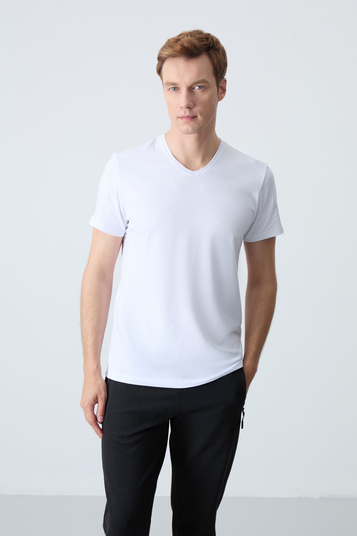 Accueil Vêtements et Style T-shirt homme basique à manches courtes, col en V et coupe standard – 87912